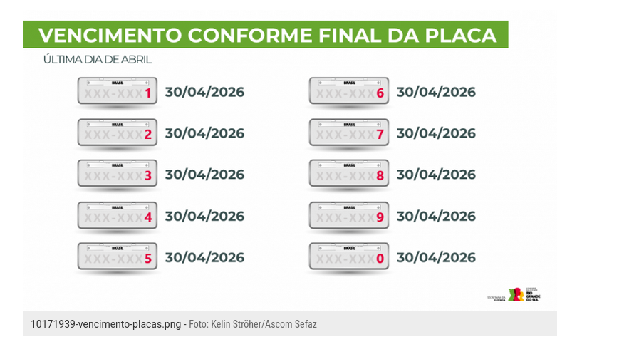 Nesses casos, os valores já estarão atualizados pela variação da UPF. Quem pagar no vencimento por placas, em 30 de abril, não tem descontos de antecipação, apenas do Bom Motorista e Bom Cidadão.